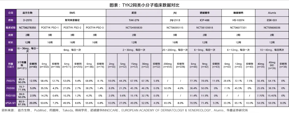 根据2024年12月公布的II期研究结果显示,D-2570三个剂量组均达到了主要终点,其它疗效终点如PASI 90、PASI100以及sPGA