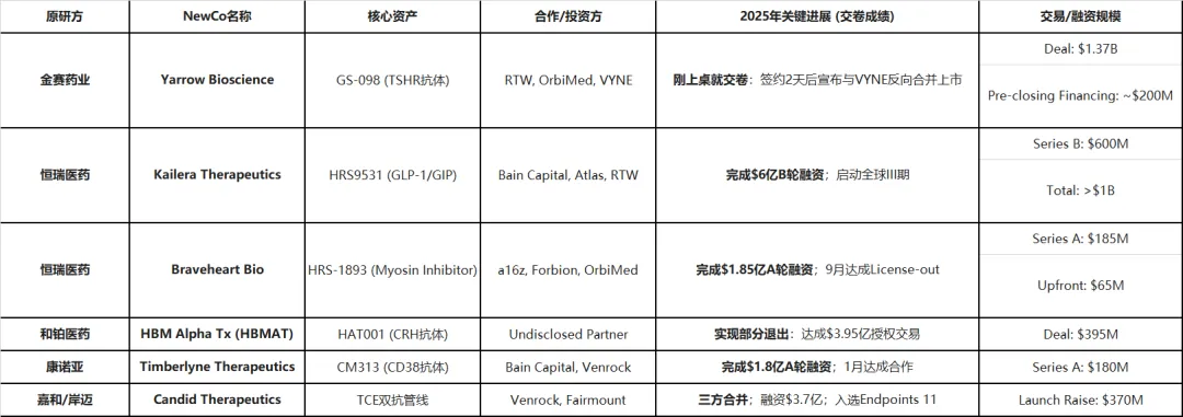 如果说2024年是“签约之年”,那么2025年就是“临床数据与融资之年”。以下几个案例代表了NewCo模式在不同维度上的阶段性答卷。