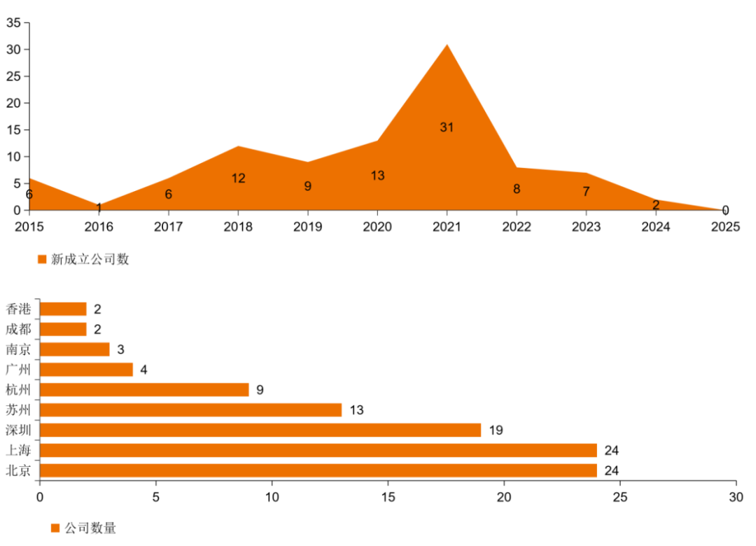 中国AI制药领域新成立企业及地域分布