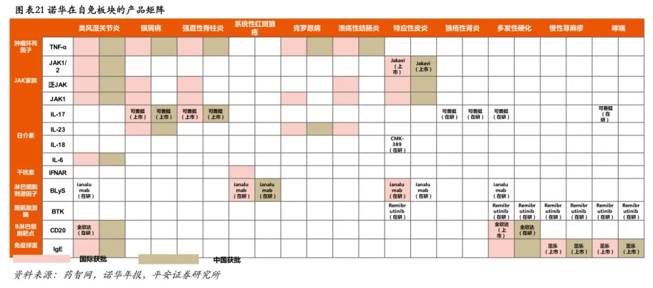 诺华在自免板块的产品矩阵