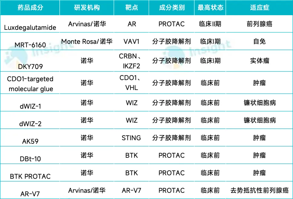 诺华的蛋白降解剂管线