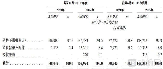 商业化的进展与市场准入高度同步。2023年、2024年及2025年前6个月,精锋医疗分别取得0.48亿元、1.60亿元及1.49亿元营收,同比增速233.03%、393.91%,在高速成长期间进入二级市场。