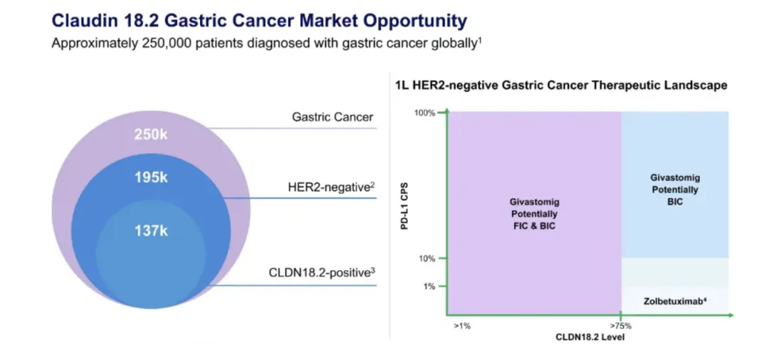 这与仅对高表达人群有效的zolbetuximab形成鲜明对比,也意味着Givastomig潜在患者将比zolbetuximab多出几倍。