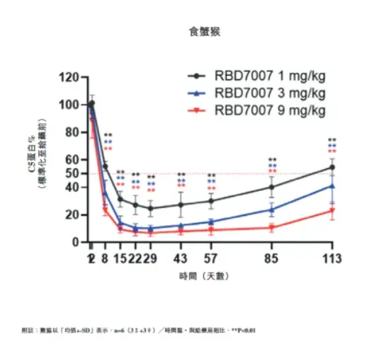 即将在1月9日港股上市的瑞博生物,其核心递送技术平台RiboPepSTAR™正在进行肾脏靶向递送验证,靶向C5的siRNA药物RBD7007更是在临床前数据展示出对循环C5蛋白水平和肝脏C5 mRNA表达的有效和持续抑制,具有很强的PK/PD相关性。