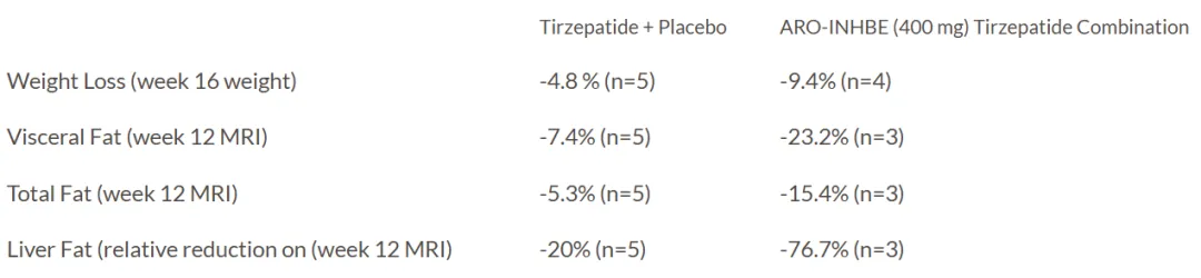 ▲ARO-INHBE联合tirzepatide的治疗效果(图片来源:参考资料[1])