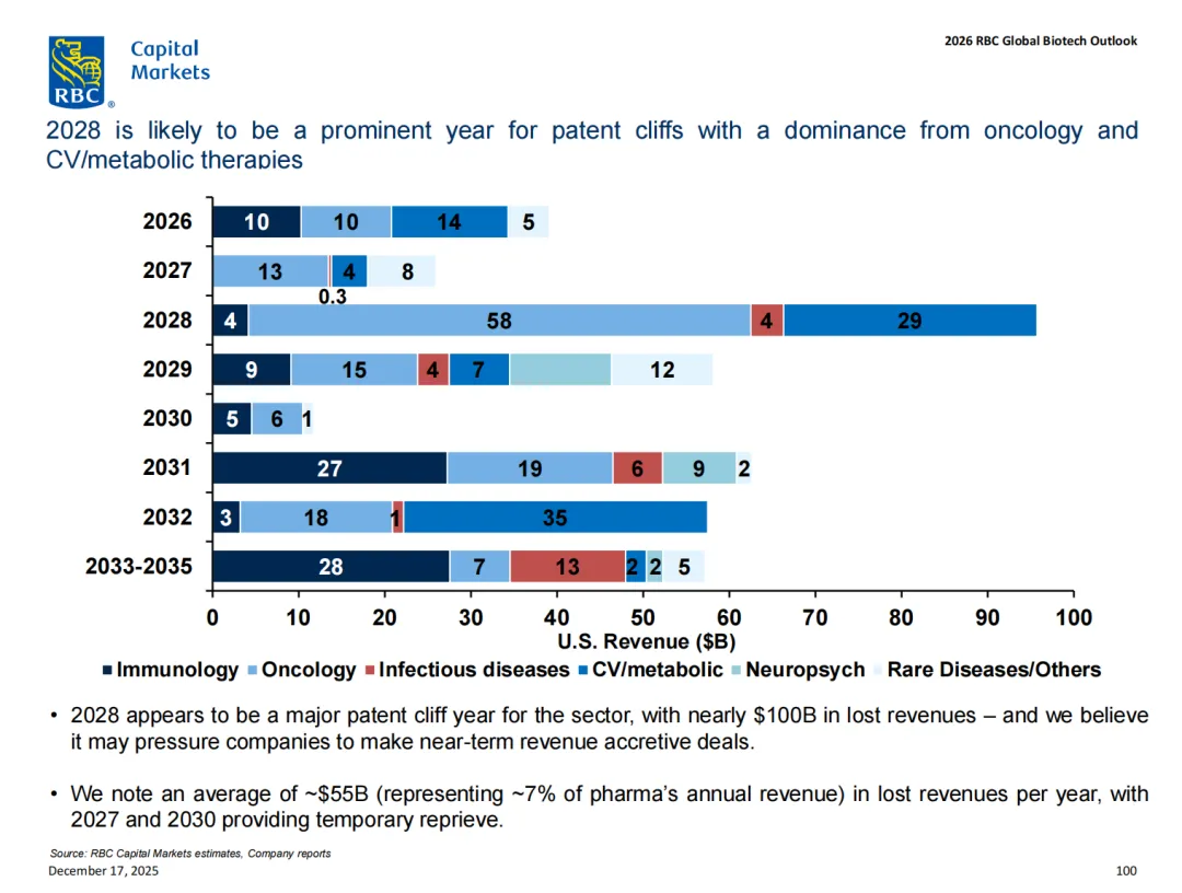 结语:2028年的专利悬崖如洪水猛兽袭来,在这里可以预测:2026-2027年将是并购大年,而巨额并购的序幕或许就从2026 JPM炸响,准备迎接吧~