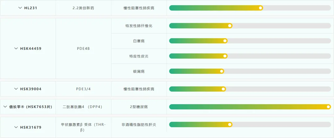 代谢疾病赛道,考格列汀是全球首个双周超长效DPP-4抑制剂,2024年上市后快速纳入医保,2025年销售额预计破5亿元;HSK31679作为一款THRβ激动剂,针对代谢综合征(MASH)进入II期临床,差异化竞争现有GLP-1单靶点药物。