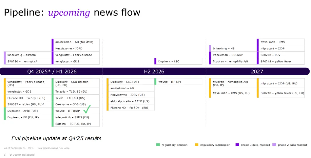 赛诺菲强调,2026年将是管线价值验证的关键一年,多项重要临床数据即将读出。其战略核心在于,通过彻底的业务聚焦和资本配置,将科学潜力转化为一系列成功的上市产品,重塑其作为领先创新药企的增长轨迹。