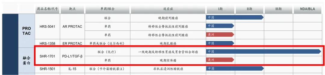但是在2024年的年报中,披露的关于SHR-1701的临床试验,除了一项已经递交NDA的(也就是本次获批)的适应症,只剩下孤零零的一个澳洲I期临床试验。