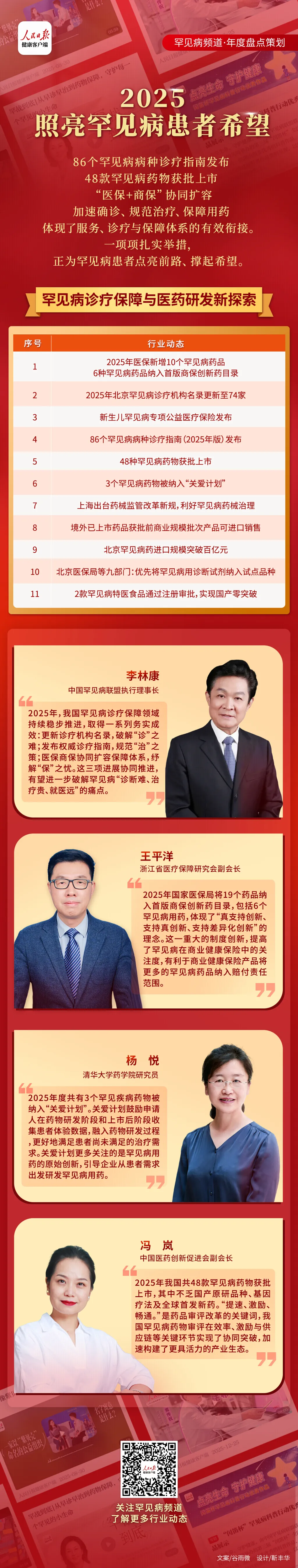 86个罕见病病种诊疗指南发布、48款罕见病药物获批上市、“医保+商保”协同扩容……2025年,罕见病领域在疾病诊疗、药物研发、医疗保障等方面有了全面进步。中国罕见病联盟执行理事长李林康向人民日报健康客户端记者表示,这些进展分别对应“加速确诊、规范治疗、保障用药”三大核心问题的解决路径,体现了服务、诊疗与保障体系的有效衔接。一项项扎实举措,正为罕见病患者点亮前路、撑起希望。