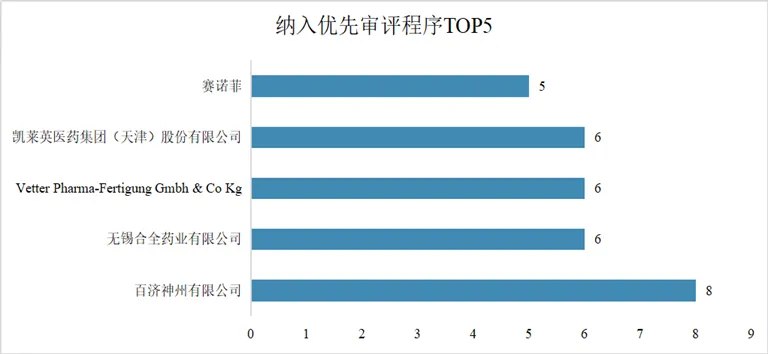 图4. 纳入优先审评程序TOP5的企业(单位:件)