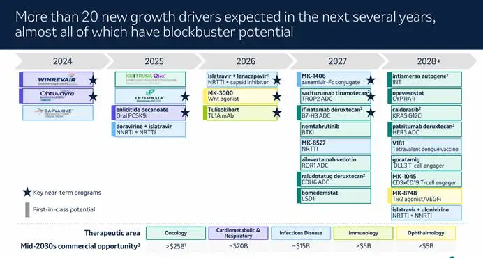基于上述产品,默沙东将2030年代中期在感染领域的收入预期从原先的50亿美元大幅度提高到150亿美元,成为其达成700亿美元收入宏伟愿景的关键基石。