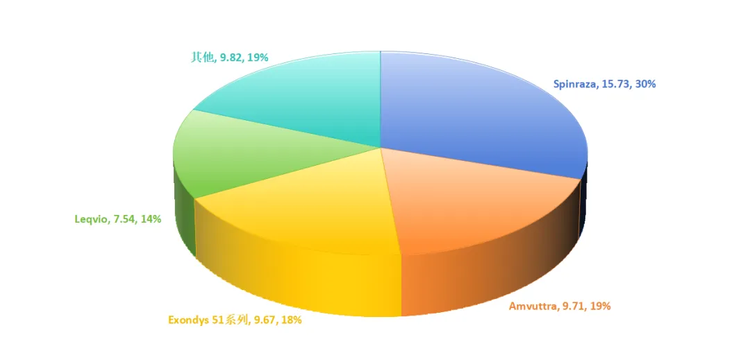 图:2024年全球小核酸药物格局(亿美元),来源:锦缎研究院
