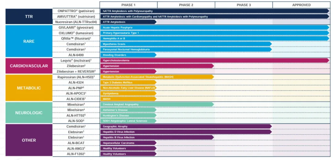 图:Alnylam在研管线一览,来源:中邮证券