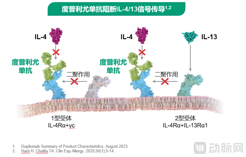 图:度普利尤单抗精准阻断IL-4和IL-13信号传导