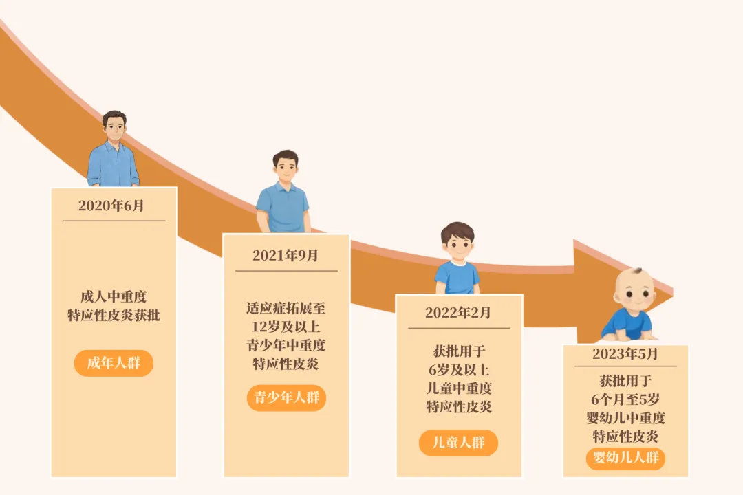 ● 2023年5月,度普利尤单抗获批用于6个月至5岁婴幼儿中重度特应性皮炎,成为中国首个覆盖6个月及以上全年龄段特应性皮炎患者的生物制剂。