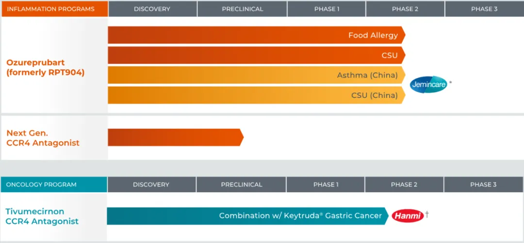RAPT Therapeutics是一家专注于炎症与免疫疾病治疗的临床阶段生物制药公司,总部位于美国加利福尼亚州南旧金山。公司通过抗体药物开发调节关键免疫反应,以应对过敏及自身免疫相关疾病。在资本市场上,RAPT的价值主要由其核心资产ozureprubart及前体分子决定,这也是GSK此次收购的重点。除ozureprubart外,RAPT管线还包括下一代CCR4拮抗剂等产品,均聚焦高价值炎症疾病赛道。