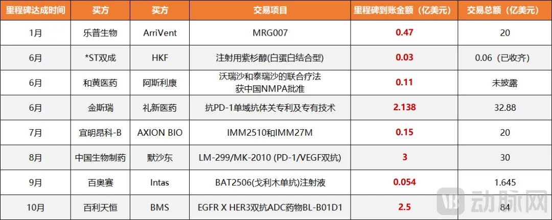 图4.2025年国内创新药海外BD交易里程碑触发案例