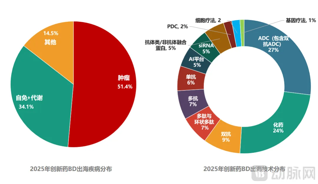 图5.2025年创新药BD出海疾病及技术分布情况