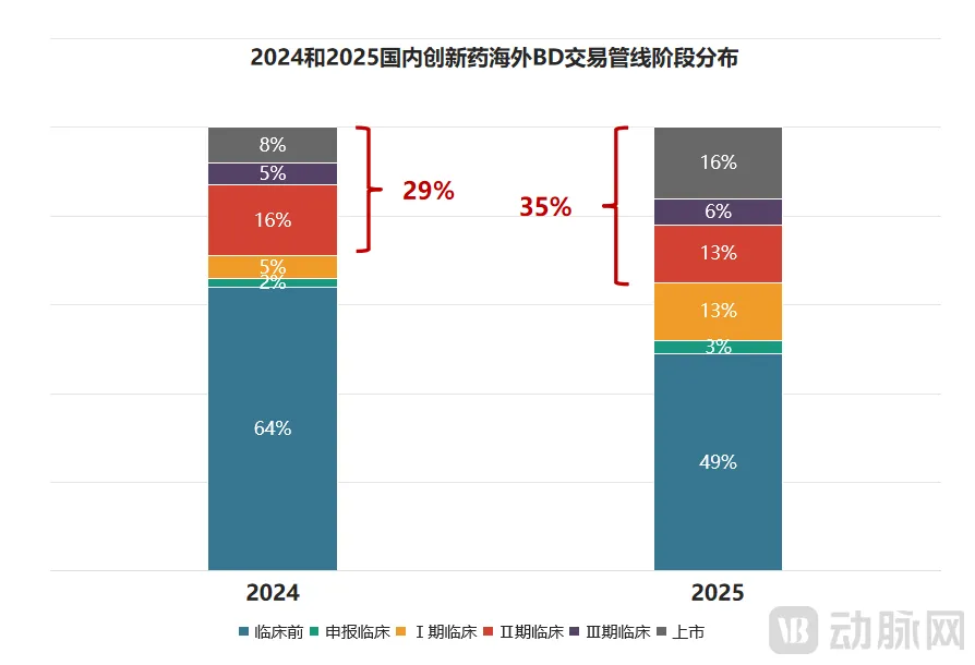 图6.2024年和2025年国内创新药海外BD管线阶段分布