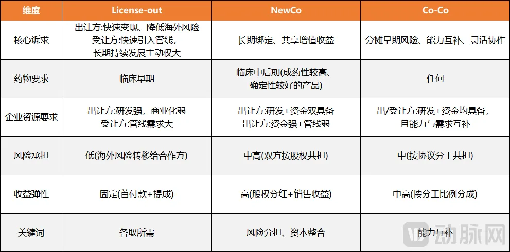 图7.海外BD交易三种主要方式横向对比