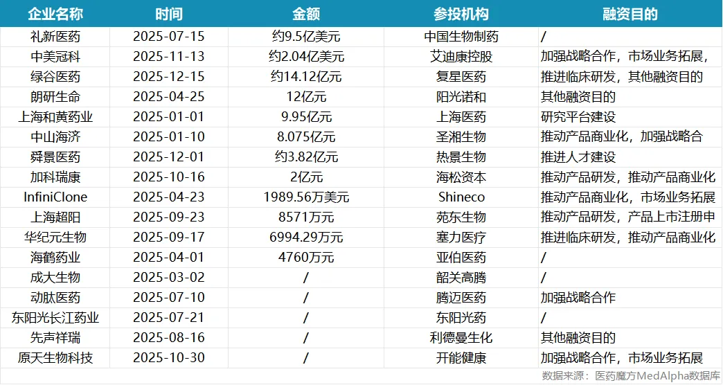 具体来看,2025年中国创新药并购市场中,前十大交易体量总计超133亿元,且同样集中在下半年。其中,中国生物制药收购礼新医药位列年度之最。