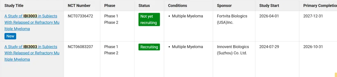ph3(用于既往接受过IMIDs/CD38/PI人群),PFS和ORR双主要终点设计,研究预计2026年2月20日启动,2028年12月完成主要结果,纳入400例受试者。