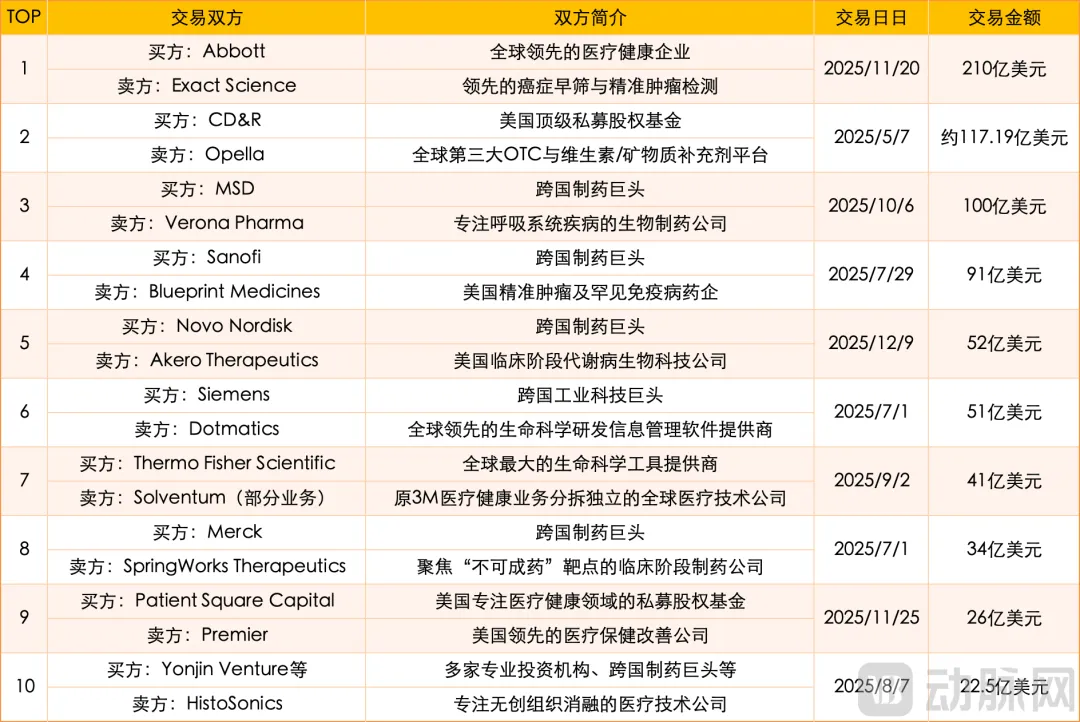 从这张并不完整的2025全球医疗健康并购TOP
