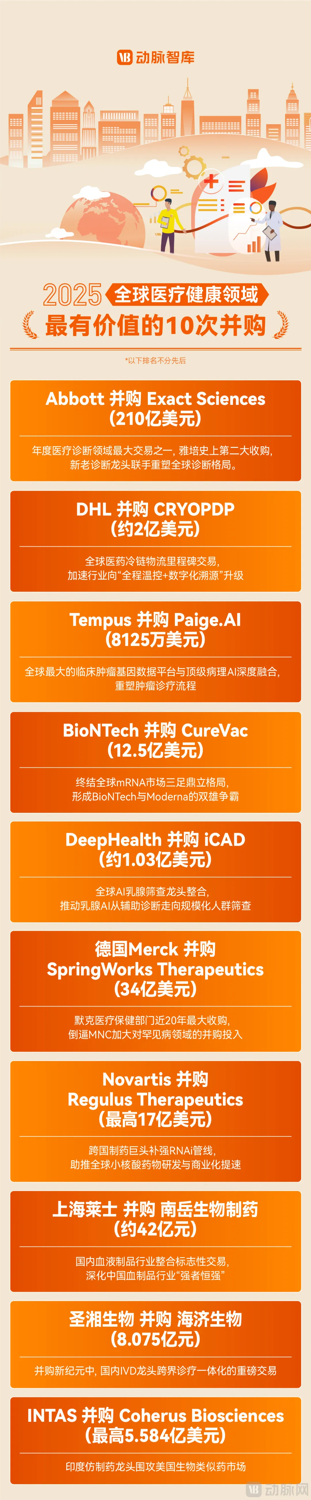 榜单:2025全球医疗健康领域最有价值的10次并购