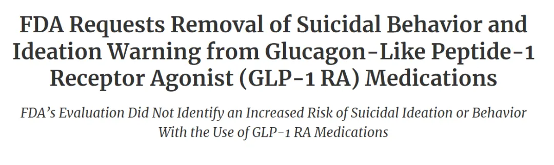 2024年的初步审查未发现明确关联,而基于全部证据的最终综合研判于2026年初尘埃落定。FDA的结论是:现有数据不支持GLP-1药物会增加自杀意念与行为或其他相关精神疾病的风险。基于此,FDA正式要求药企移除了相关药物标签中的警告内容,为GLP-1药物的致郁疑云暂时画上了句号。