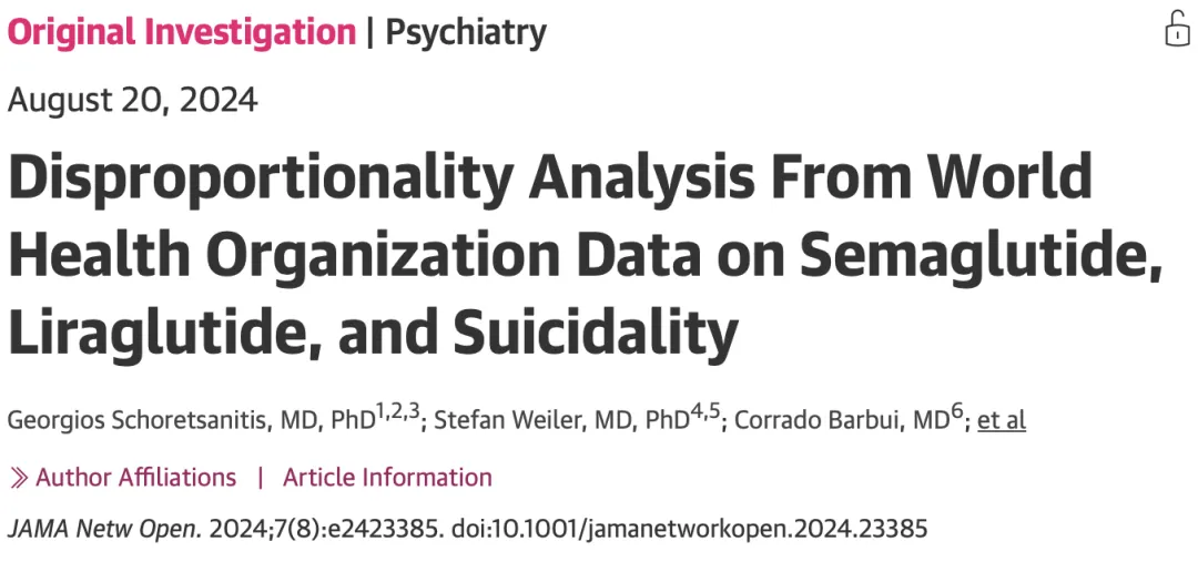 理论的争议很快在真实世界中激起回响。随着GLP-1药物在全球广泛应用,自2023年起,冰岛、欧盟及美国监管机构陆续接到与新发抑郁、自杀意念相关的个案报告,促使世界卫生组织(WHO)的研究团队利用其庞大的个体病例安全性报告数据库(ICSR),在全球范围内评估与司美格鲁肽和利拉鲁肽相关的自杀或自残的药物不良反应(ADR)情况。