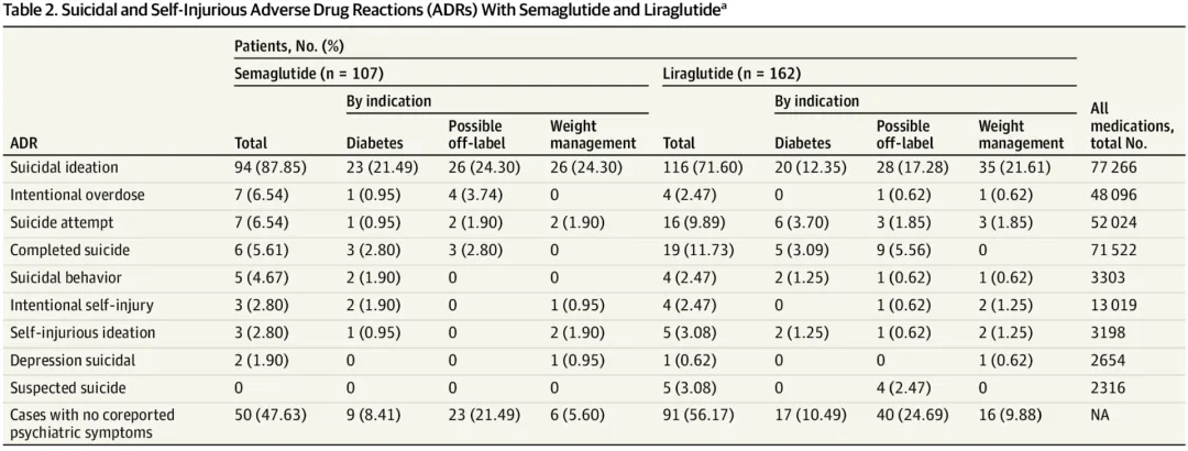 该研究结果于《JAMA Network Open》上发表,给出了一个明确的警示:司美格鲁肽用药相关的自杀意念的出现风险明显升高,大约增加了45%。与达格列净、二甲双胍和奥利司他等其他治疗2型糖尿病的药物相比,司美格鲁肽联合抗抑郁药和精神安定剂苯二氮卓类共同使用,自杀意念仍明显更高。且这种关联在已患有焦虑症或抑郁症的患者中更为显著。