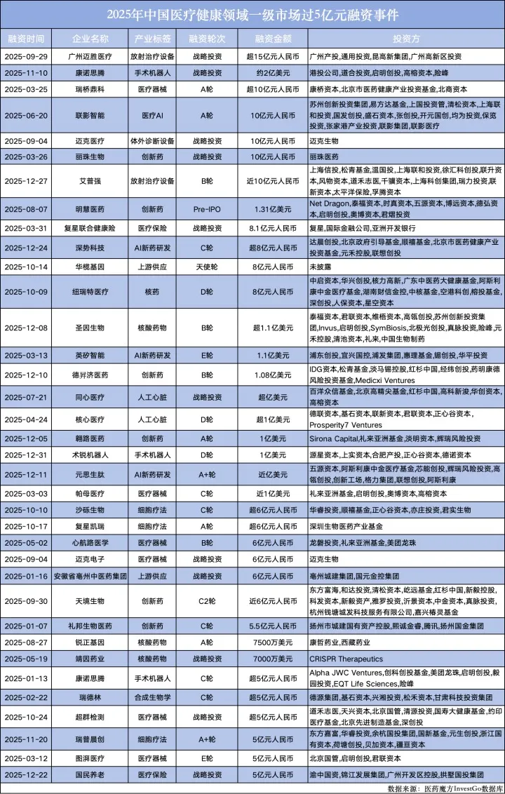 经历了一整年,中国医疗大健康领域2025年一级市场投融资画下了圆满的句号。