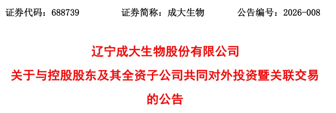 1月26日,辽宁成大生物股份有限公司(以下简称“成大生物”)发布公告称,拟以自有资金10亿元设立全资控股创新药子公司——成大生物创新制药有限公司(暂定名)。