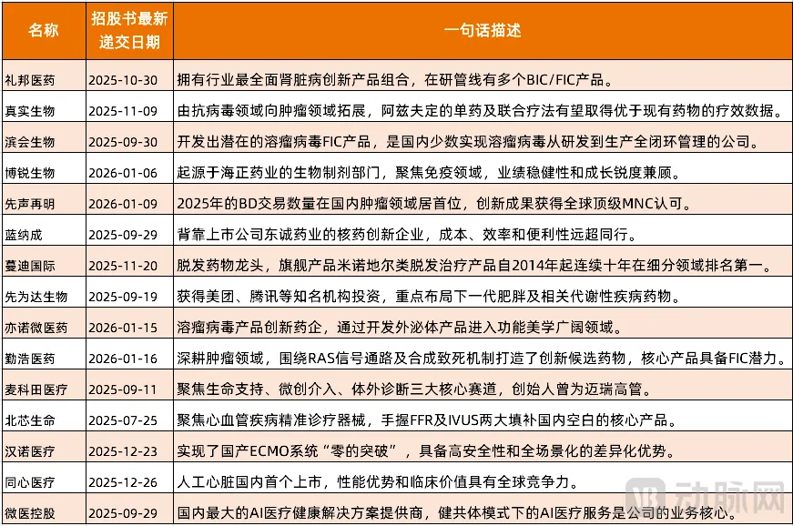 2026年15家最值得期待的医疗健康拟上市企业(资料来源:wind,动脉网整理)
