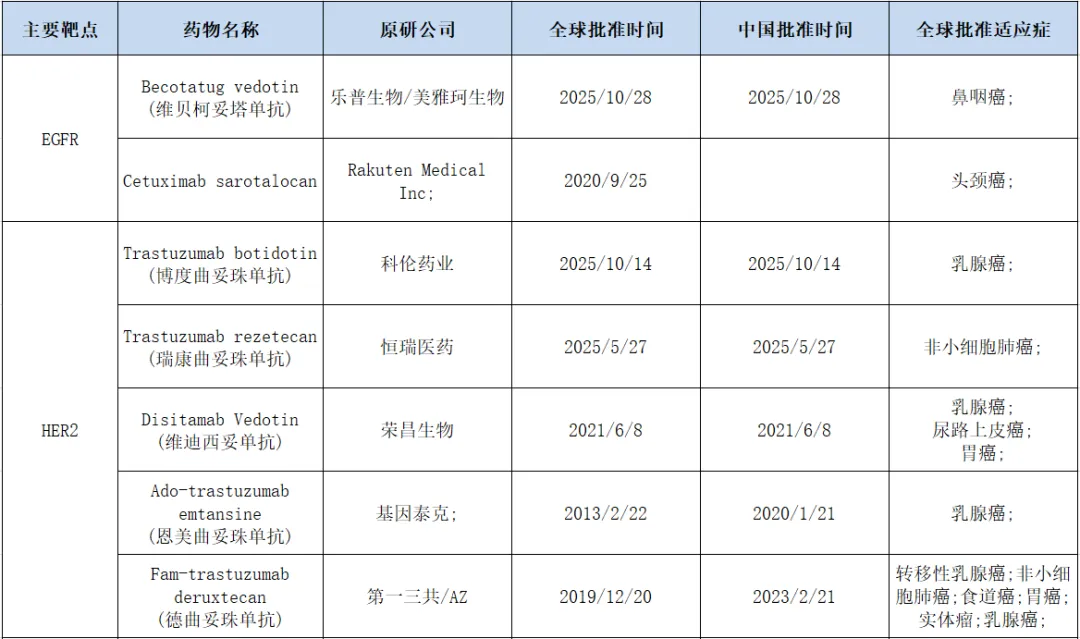 表1. 全球已上市ADC药物,来源:药渡数据