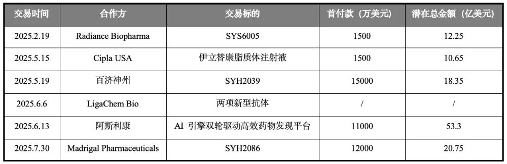 2025年石药集团BD交易