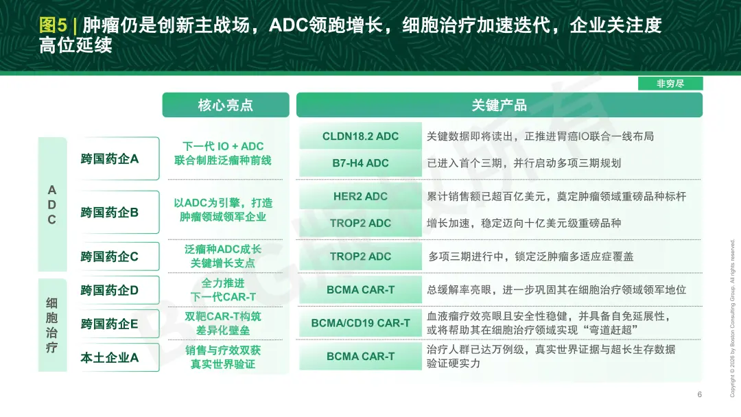 肿瘤依然是全球医药创新投入的核心领域,企业关注度持续保持高位(参阅图5)。该领域兼具技术突破潜力、明确的临床未满足需求以及可验证的商业回报路径,因而成为药企在管线布局与资源配置时优先考虑的创新阵地之一。
