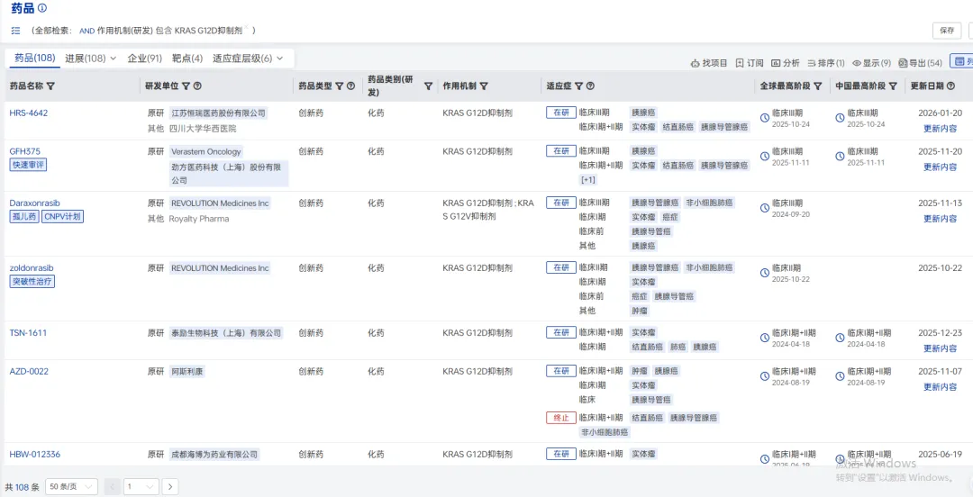 KRAS G12D抑制剂市场竞争格局(图片来源:药智数据-全球药物分析系统)
