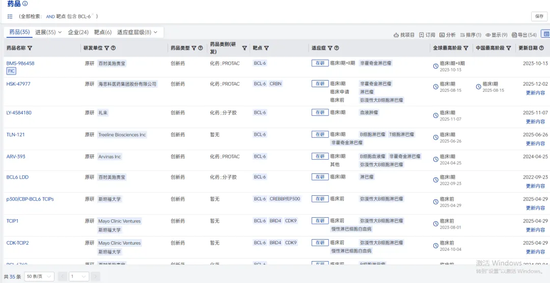 BCL6靶向药物在研格局(图片来源:药智数据-全球药物分析系统)