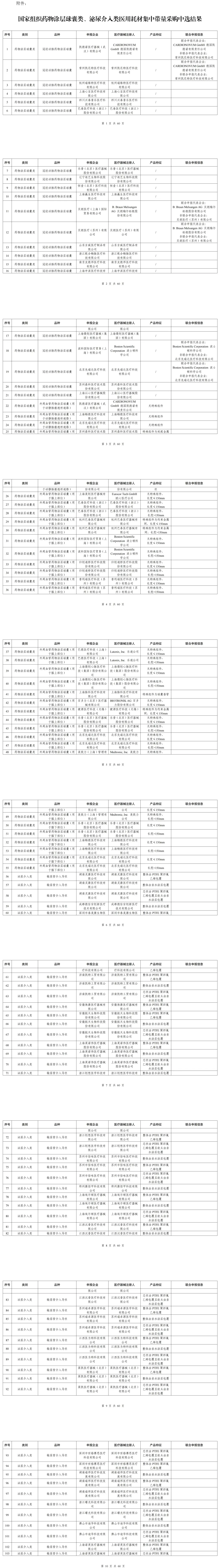 附件:国家组织药物涂层球囊类、泌尿介入类医用耗材集中带量采购中选结果