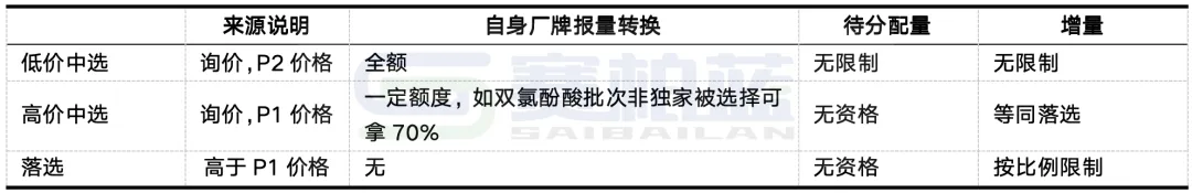 不过,本次标书在约定采购量环节对最终量价关系的判定并非绝对——原因在于,在余量(待分配量)分配阶段,报价未超过询价基准的中选企业即便此前丢失了部分采购量,仍有机会通过医疗机构的自主选择重新获得。