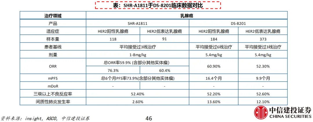 一方面从进度上来看,SHR-A1811的二线HER2突变非小细胞肺癌已经获批,同时正在进行多项国内三期研究,其中就包括HER2阳性乳腺癌、HER2低表达乳腺癌等适应症。