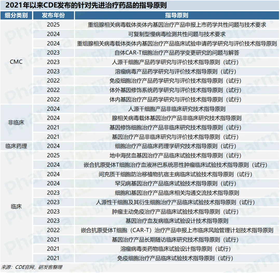 CDE自2021年起累计发布26项针对先进治疗药品的技术指南,覆盖了CMC、非临床、临床药理及临床等全链条关键环节。