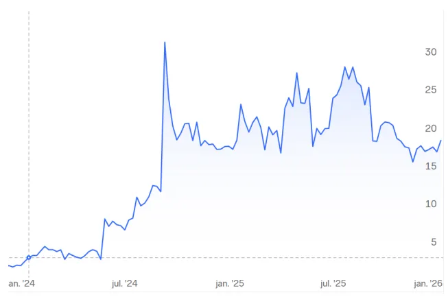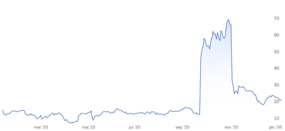 图3.Corcept Corcept股价走势图。(图片来源:Nordnet)