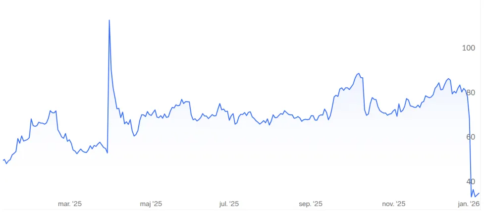 图2. uniQure股价走势图。(图片来源:Nordnet)