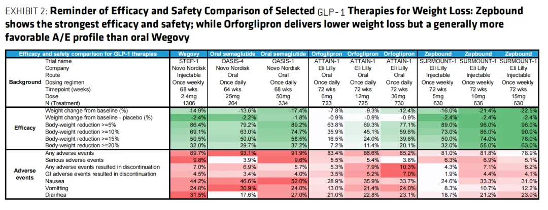 Orforglipron在口服GLP-1领域的优势和未来的市场统治力,将进一步放大其销售峰值和潜在供应链玩家的订单弹性。