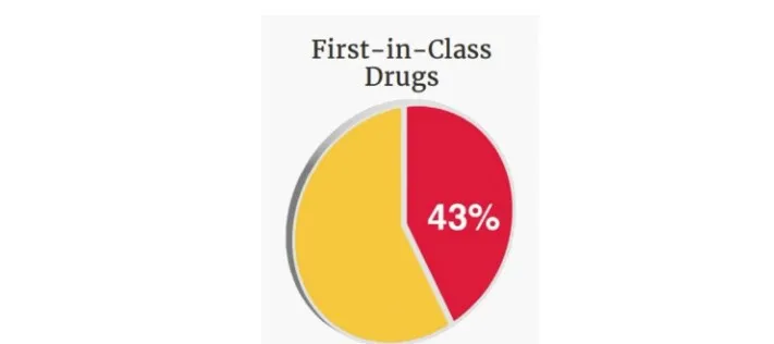 在2025年CDER批准的新药中,有20款被认定为具有全新作用机制的First-in-Class疗法,占比高达43%。这些药物代表了全新的靶点或治疗策略,共同展现了2025年创新药物在多个治疗领域的突破。