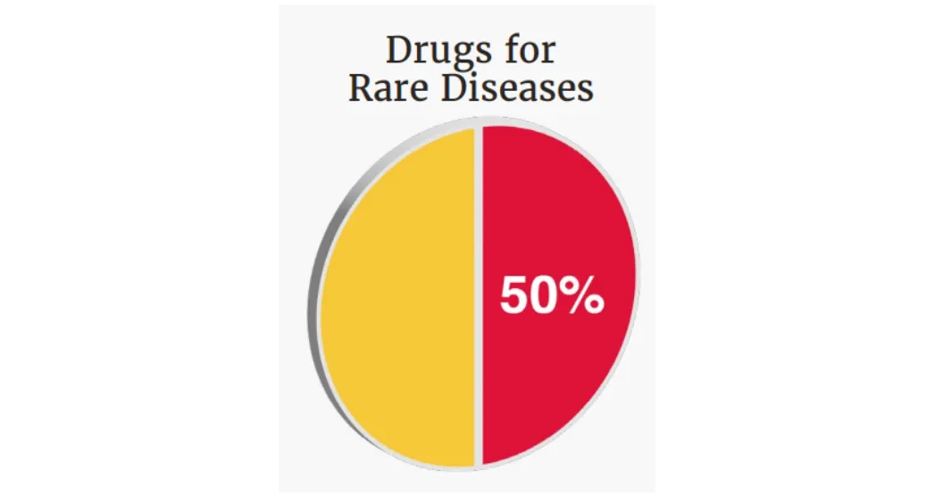2025年,罕见病依旧是新药审批的核心方向之一。在CDER批准的46款新药中,有23款(占比达50%)因针对罕见病治疗而获得孤儿药认定。这些药物涉及的病种包括巴思综合征、肢端肥大症、全身性重症肌无力、血友病、特发性肺纤维化以及多种罕见肿瘤。其中,多项“首次”成果填补了长期存在的治疗空白,例如全球首款获批用于治疗Barth综合征的线粒体疾病药物Forzinity(elamipretide)等。这些突破不仅为患者带来了新的治疗选择,也持续推动研发资源和产业投入向临床需求尚未得到充分满足的领域集中。
