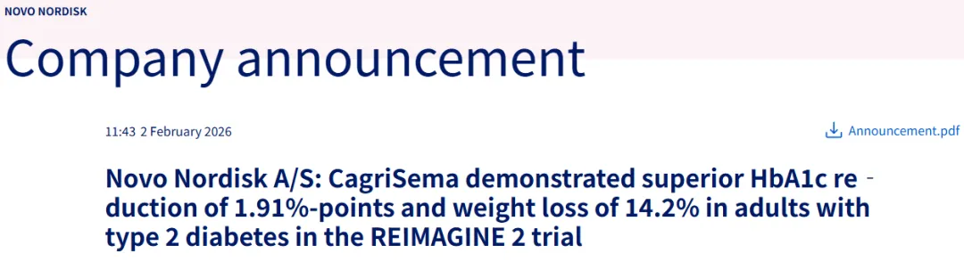 诺和诺德研发负责表示:“我们对CagriSema在2型糖尿病患者中的临床数据非常满意,这也印证了它在肥胖试验中强劲的减重数据。通过将司美格鲁肽和卡格列肽结合,患者在血糖控制和体重减轻方面的效果均优于单独使用其中任何一种疗法。”